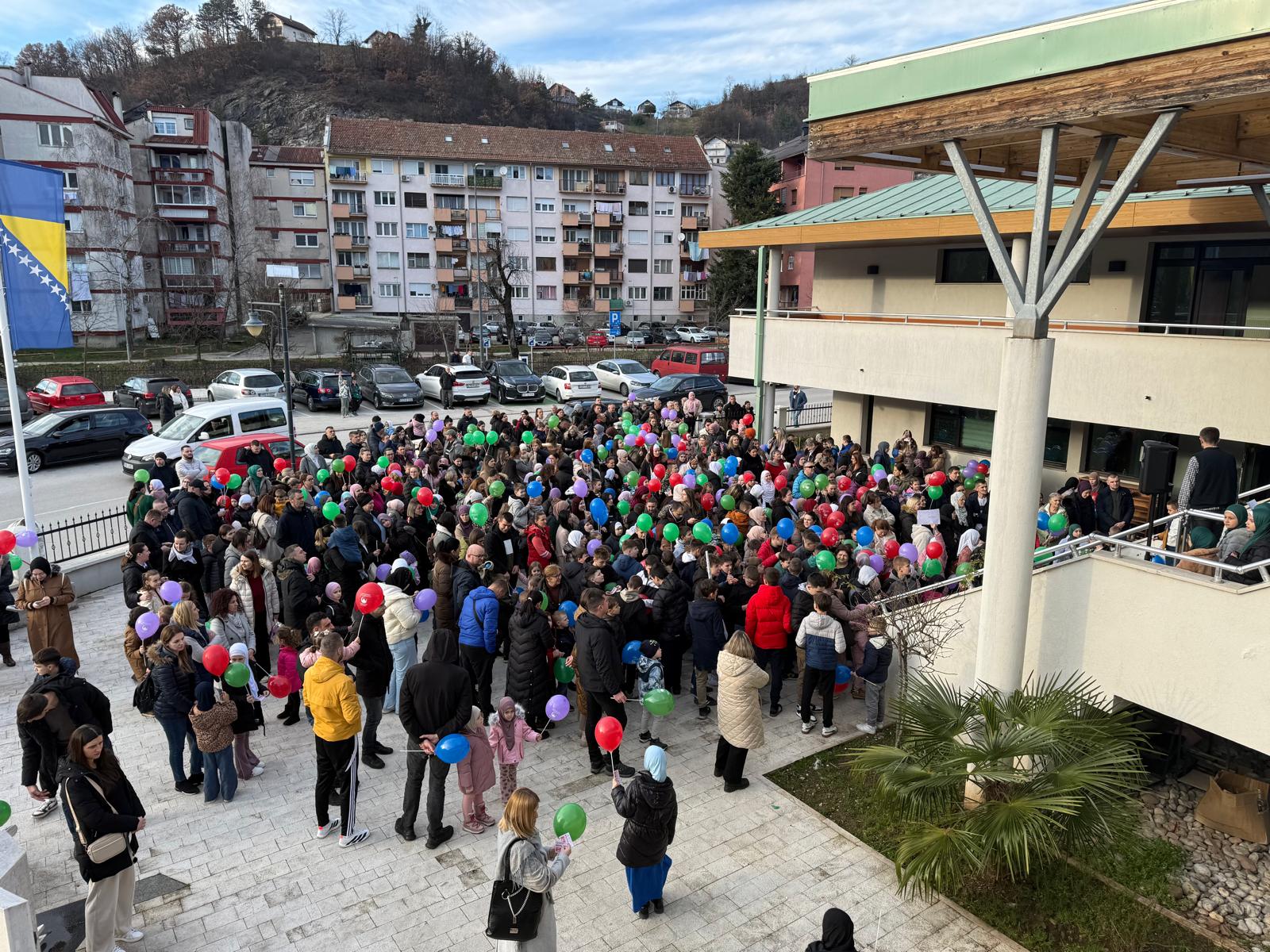 Prvi dio programa započeo je u 16:00 sati ispred Gradske džamije, gdje su mališanima podijeljeni baloni i prigodni pokloni. Program je započeo učenjem Kur’ana, nakon čega su uslijedile ilahije i kaside u izvedbi Hora Mektebskog centra. Posebnu radost izazvalo je izvlačenje nagrada i iznenađenja za najmlađe. Ukupno je podijeljeno oko 30 nagrada, među kojima su bile i vrijedne nagrade poput poklon-vaučera i porodičnih iftara.